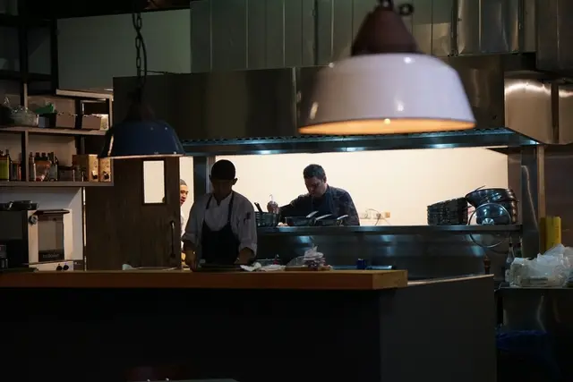 他們的真的超大的啦 逛了一圈終於可以坐下來吃飯了 他們是開放式廚房 廚師一舉一動都能看的到 可以看到西班牙主廚在做菜的模樣