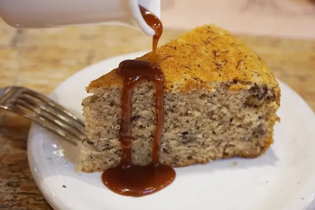 焦糖淋上去的樣子也太誘人了吧!!!! 看起來好好吃喔>////< 一口咬下 好好吃~香蕉味道很夠 蛋糕口感濕潤 單吃香蕉蛋糕就好好吃了 配著焦糖一起入口 他們的焦糖的風味有一種熟悉的滋味ㄟ 是什麼勒~~我想起來了! 是森永牛奶糖的味道!!哈 很像ㄟ 很搭!!這個好吃! 我尬意這個蛋糕!!