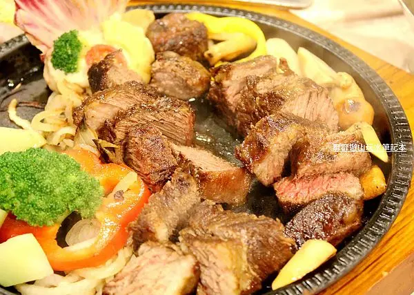 接著服務人員幫我們把牛排切成小塊,搭配的醬汁是黑胡椒醬!