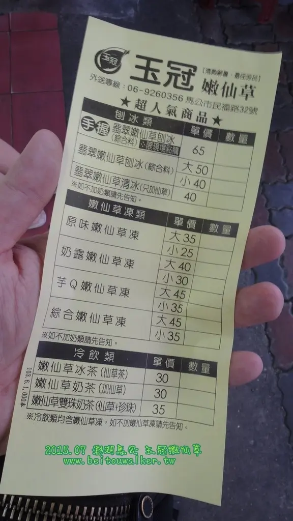 高雄有海之冰,澎湖有玉冠嫩仙草。這次旅行因為是在炎熱的七月,因此一整天下來不是吃冰就是一直喝飲料。要吃得過癮一點就來玉冠嫩仙草點份超大杯的手握嫩仙草刨冰,超大份量讓小王子第一眼還嚇的目瞪口呆。