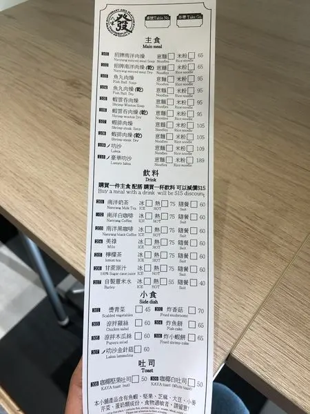 飲料的話搭配主餐可以減價15元