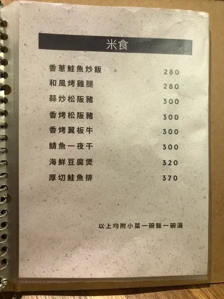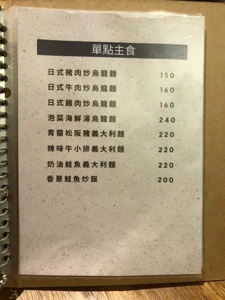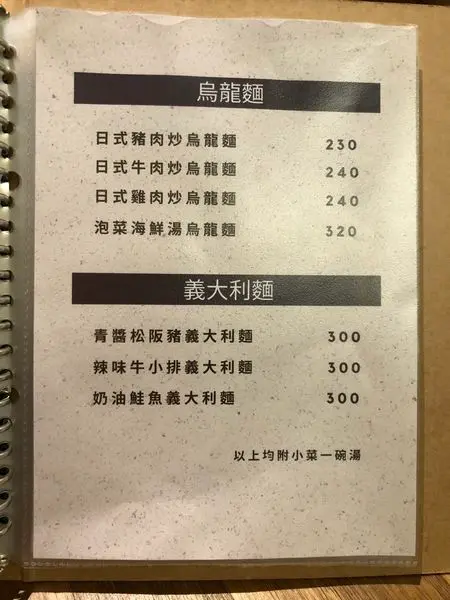 菜單大致分為烏龍麵、義大利麵、米食,以及單點小物