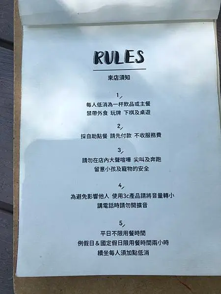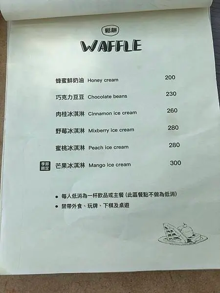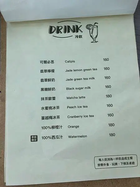 店內每人低消為一杯飲品或主餐