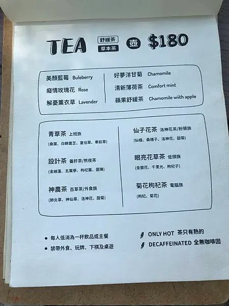 針對不同族群也有推薦不同的品項,舒緩茶與草本茶都是熱的喔!