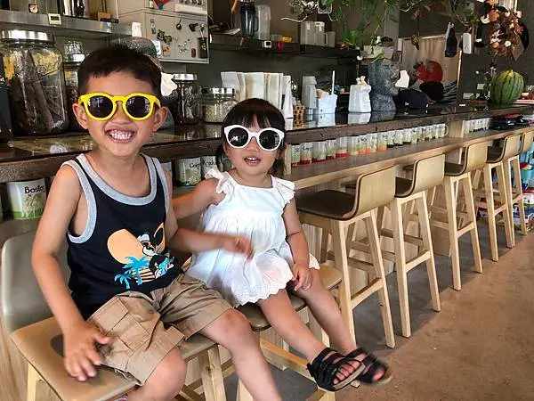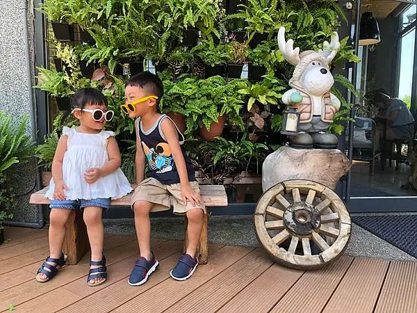 孩子們樂得開心在店裡和大草皮跑跳