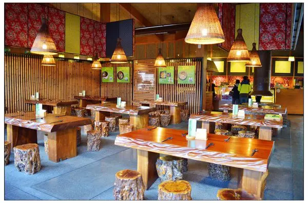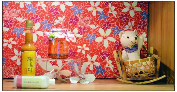 店內處處可見傳統元素,如客家花布及代表客家的桐花圖像
