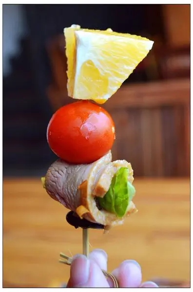 ↑底層的肉片捲口感很嫩、肉汁多又甜,不錯吃~