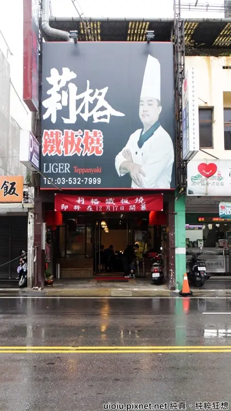 莉格鐵板燒的看板超醒目,超好認的,沒錯,看板人物就是主廚本人的照片啦!