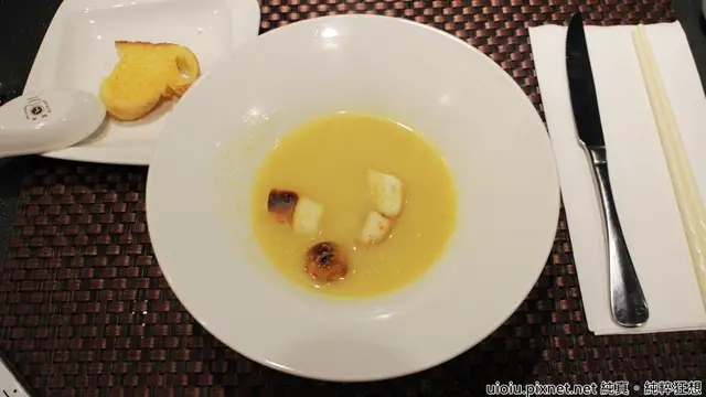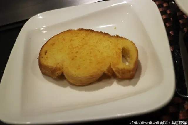 大蒜麵包烤的脆脆的,趁著微熱時送入口中味道還不錯,也可以沾著湯品一起享用