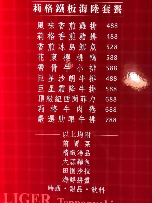這次來莉格鐵板燒用餐讓人很滿意,雖然沒有華麗的裝潢,但道道餐點都讓人滿意,現在覺得東西好吃比裝潢還重要,如果你想吃好吃的鐵板燒,很推薦你來莉格鐵板燒品嚐一番!