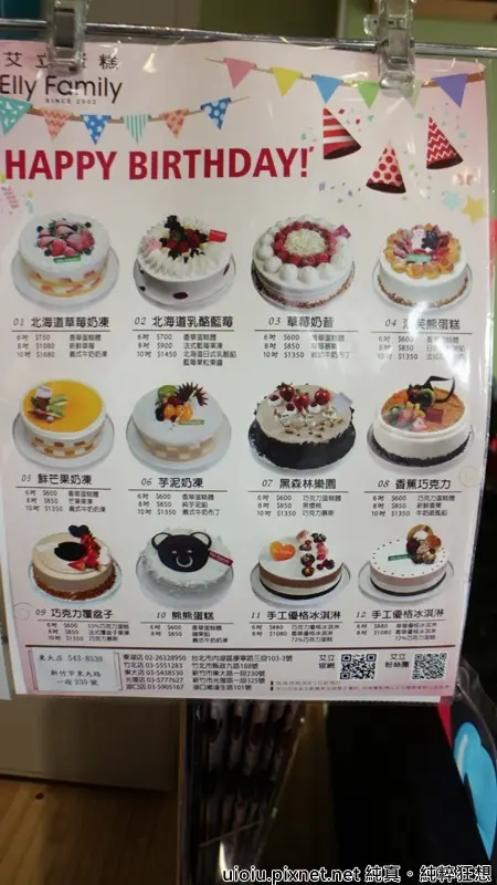 艾立不只戚風蛋糕有名,生日蛋糕也很多人會購買,店內有價目表可以參考,
