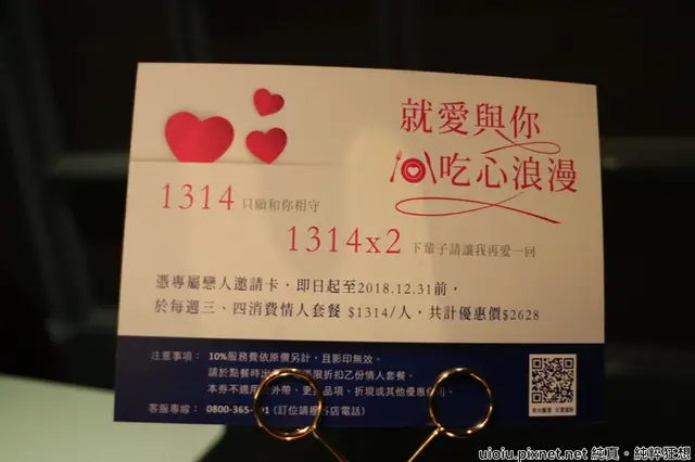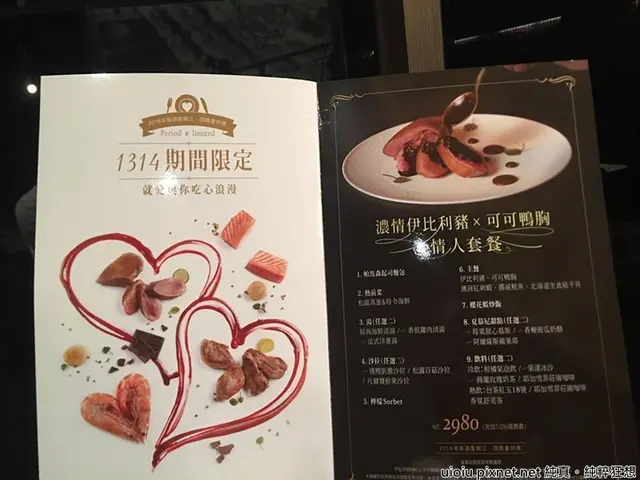 1314期間限定套餐只有在每周三、四供應,只要事先打電話預約就可以享有1314元/人,2人共計2628元的優惠價(原價2980元/2人),