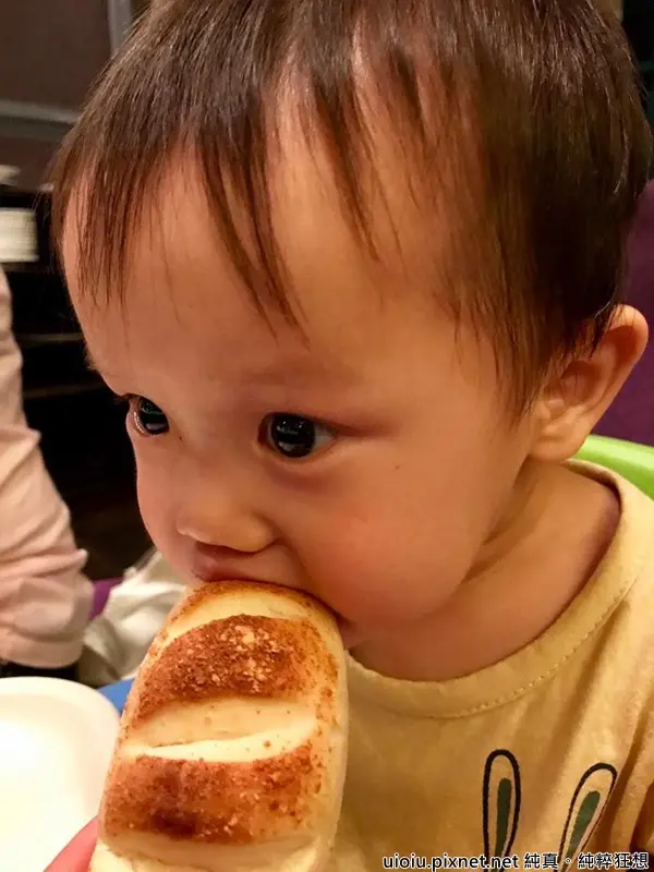 熱騰騰的帕瑪森起司麵包我家兒子也很喜歡,自己一個人就吃了一個!