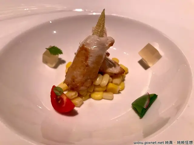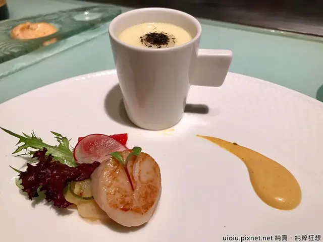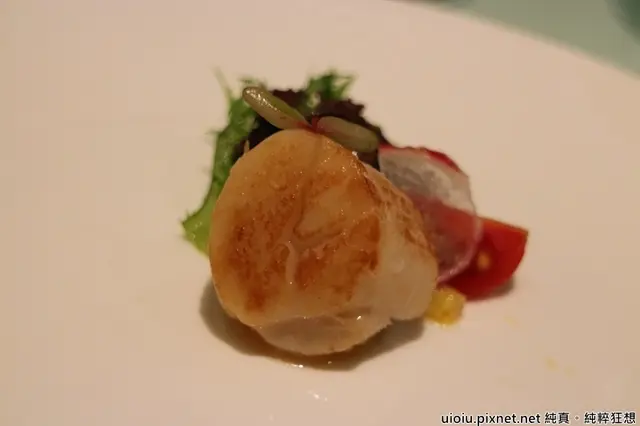 時令海鮮是干貝,這一顆跟主菜的干貝似乎都是北海道生食等級干貝,微微煎過鎖住干貝的肉汁,吃起來柔軟鮮甜~