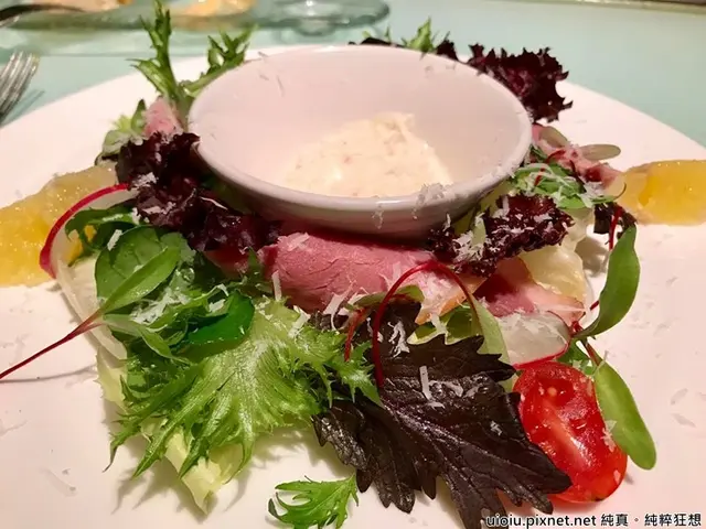燻鴨嚐起來溫潤又爽口,搭配顏色繽紛的多種生菜,凱薩醬加上主廚現刨出來的帕馬森起司~~是一道味覺滿足,視覺上享受的沙拉!
