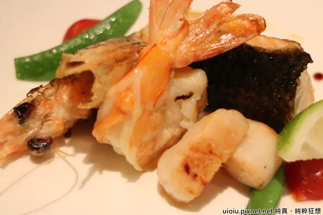 鮭魚含有豐富的魚油,而且沒有多餘的調味,僅加上一些胡椒提味,肉質鮮嫩多汁,讓小朋友吃也很放心,蝦子吃的出鮮度,肉質Q彈有咬勁,最讓人念念不忘的就是北海道生食級干貝啦!干貝微煎後鎖住肉汁但又吃的出鮮甜,帶有原來海水的鹹度,不用多加醬汁就美味,也給我家兒子嘗了一口,非常識貨的想要再吃呢!