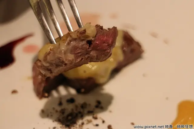 五分熟的菲力看起來跟牛肉好像,連口感也很像,不敢吃牛肉的人可以選擇伊比利豬來品嚐哦!加上濃郁的起司後讓味道更多變化,伊比利豬沒有豬騷味,只有原肉流淌出肉汁的美味滋味,難怪被譽為「世界上最好吃的豬肉」!