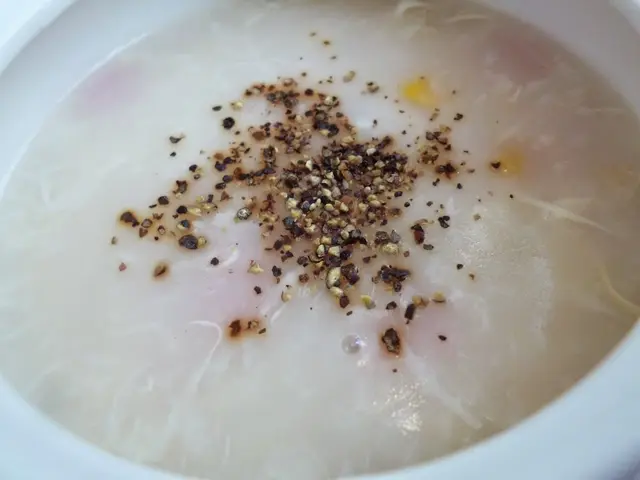 玉米濃湯已經灑了胡椒粉上去,不過整體喝起來很像稀飯?