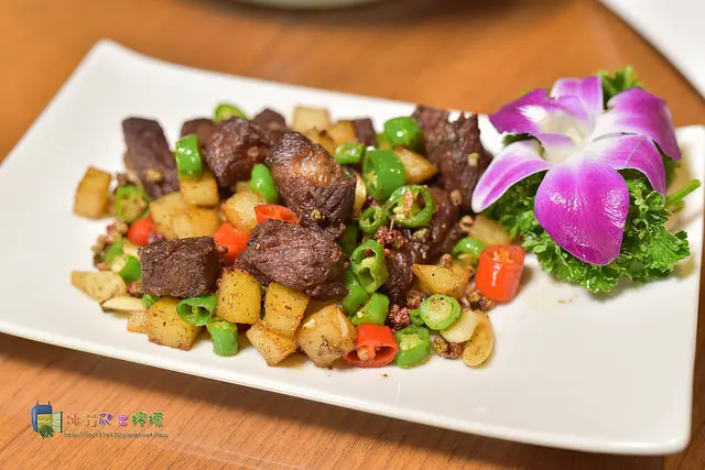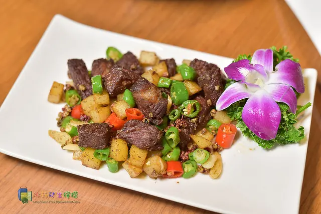 牛肉表層如肉乾般的酥香,口感富有彈性和咀嚼感之外,裏頭還充滿著牛肉油脂的甜香感,搭上花椒的麻香氣,真是美味至極