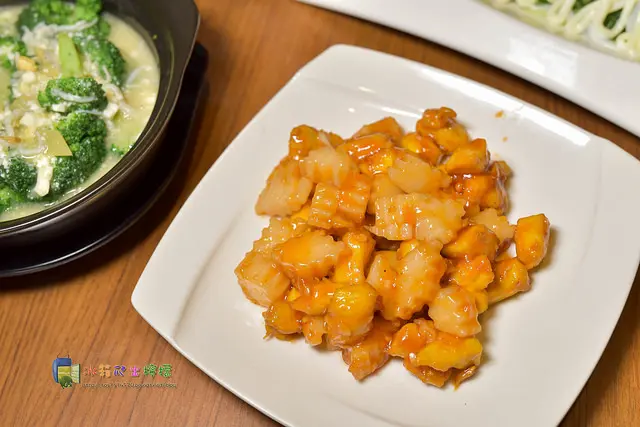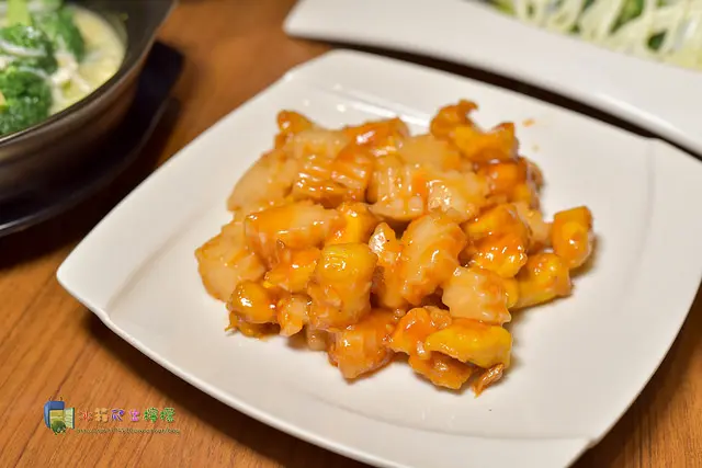 和雞丁一同拌炒的是豆薯,口感如水梨般脆口多汁;雞丁表層微酥、肉質富有彈性,兩者的口感表現相當不錯,只是糖醋醬的味道個人覺得稍感偏甜(檸檬比較偏愛酸味明顯的糖醋醬)