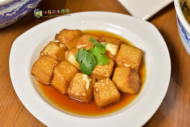 雞蛋豆腐的外表炸的金黃酥香,裏頭的豆腐鮮嫩無比,咬下去如同蒸蛋般入口即化,搭上煨煮入味的清爽醬汁,真是美味極了