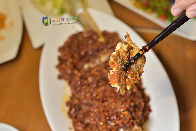 這道菜的味道相當特別,表層的辣椒碎口感酥脆,配上酥香細緻的黃魚,入口先是一陣甜感,接著是層次豐厚的辣感佈滿整個口腔,且辣度充滿後勁,整體表現是甜辣酥香,但因辣感十分帶勁,會推薦給平時吃重辣的朋友品嚐。