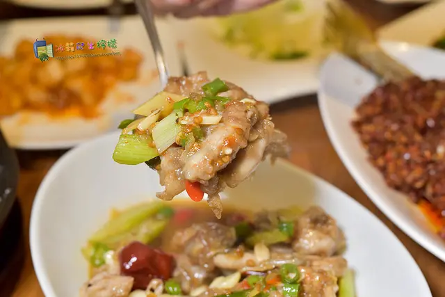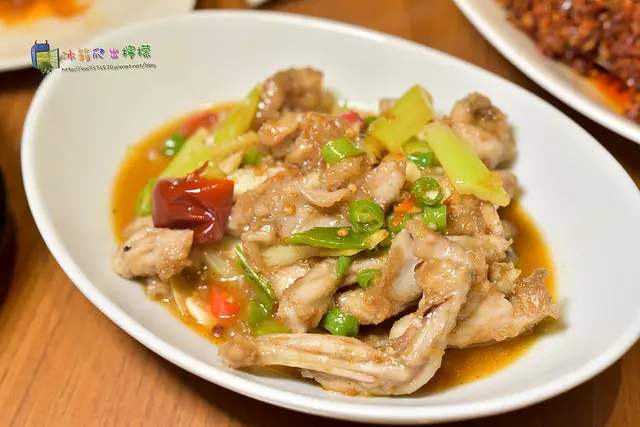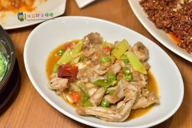 滑口細嫩的蛙肉,加入蒜頭、蔥花、西洋芹、泡椒...等配料一同伴炒,使其風味鮮香滿溢、辣度溫潤舒適,相當開胃下飯