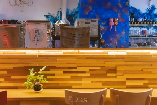 我特別喜歡一樓的佈置,在有限的空間裡,將每個區域都做出不同的感覺,無論是靠著吧檯的長條型單人座位、中間披著老虎毯子的沙發、後方的沙發區,每一張桌子都像是一個只屬於自己的小小包廂,每桌之間有著最恰當的距離,各自安好不被打擾。