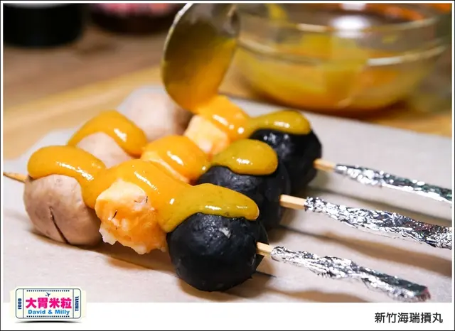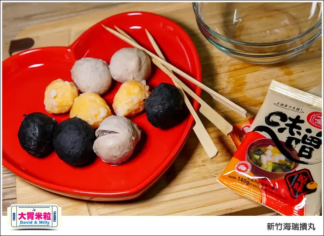 首先使用【海瑞摃丸】招牌原味摃丸、鮮蝦丸、墨魚摃丸三種不同顏色,加上日式味噌醬,