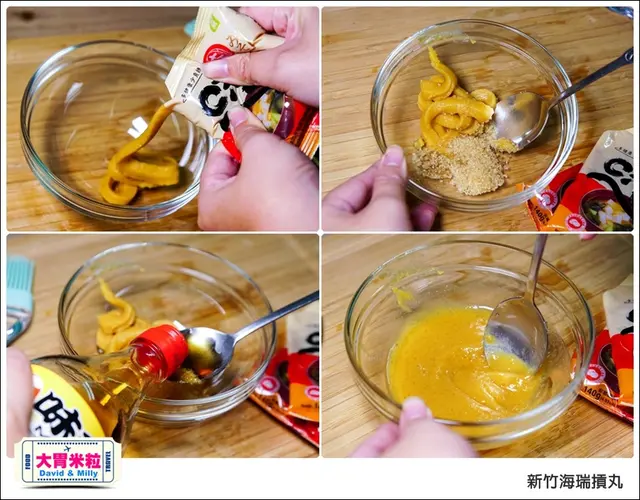 米粒這裡的比例是味噌醬2大匙、砂糖2小匙、味醂2小匙,拌勻備用
