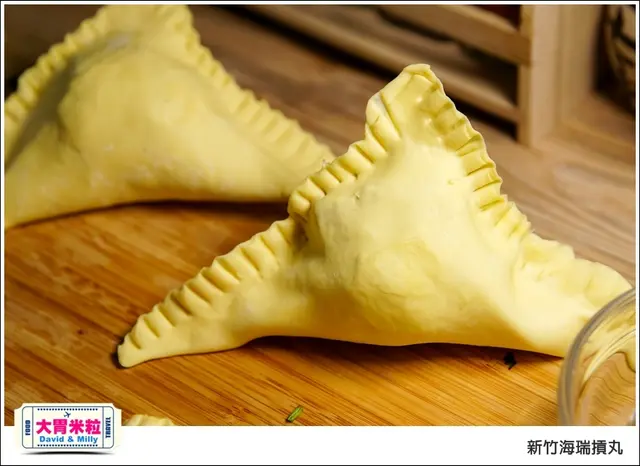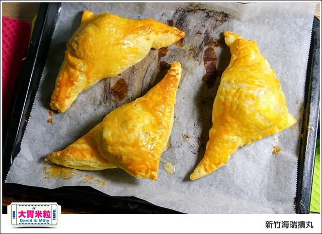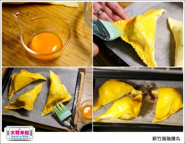 包好後,就像這樣呈現三角形(類似咖哩餃),第一次挑戰酥皮,感覺好期待!