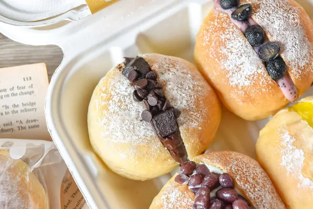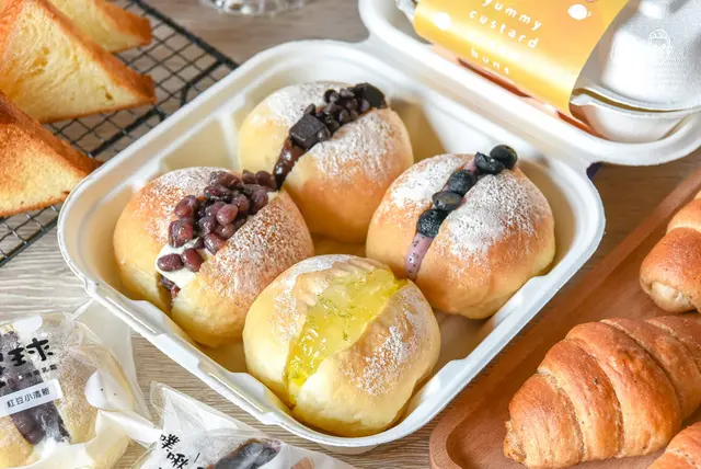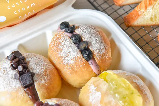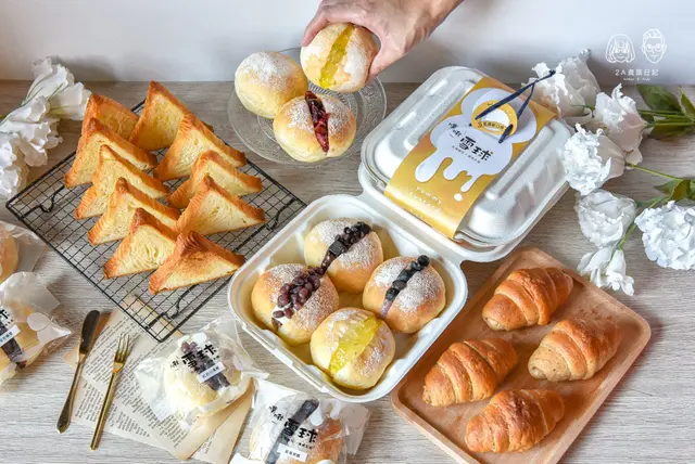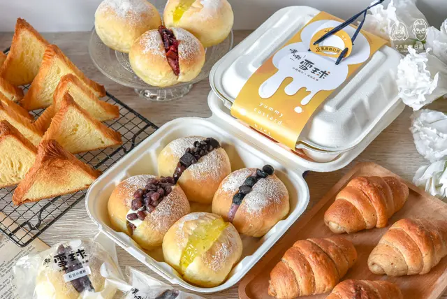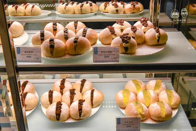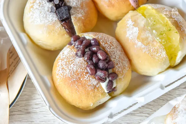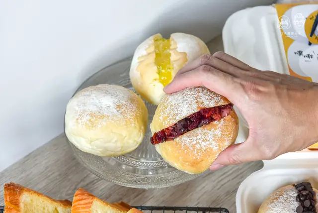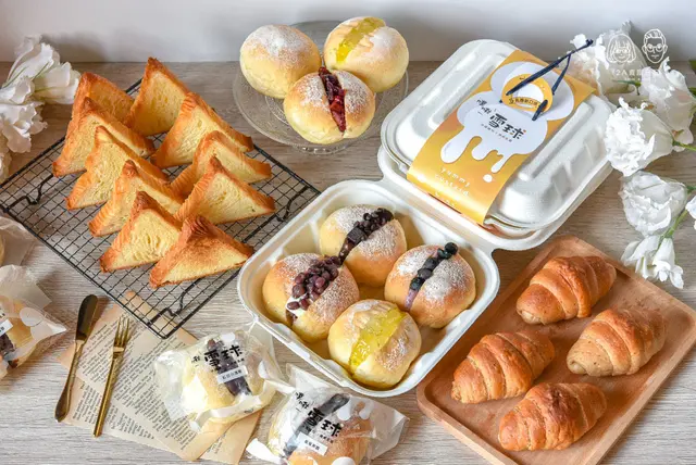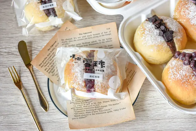 為「思源麵包蛋糕」獨創的「噗啾雪球」目前共有六種,且會不定期推出季節性口味,這一顆顆白白胖胖的噗啾雪球每天下午3點才出爐,只要一放上架,就會被夾光,說是「思源麵包蛋糕」招牌必買的商品也不為過。