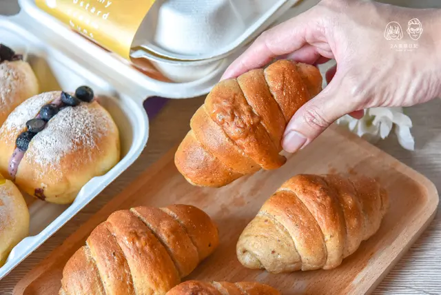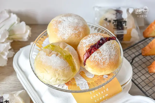 麵包的底層則還加入了奶油來烤製,因此有著鮮明的奶油香氣及像餅乾般的酥脆感,一顆「噗啾雪球」享受得到柔軟的麵包、細緻的內餡及香脆的三種口感,讓第一次吃到的我們非常喜愛。