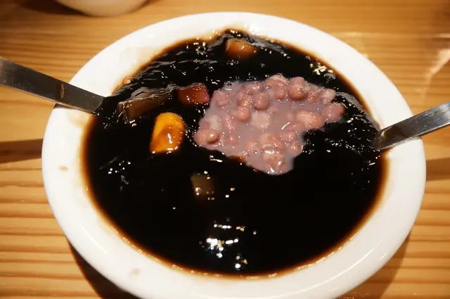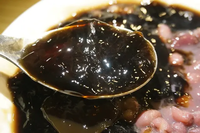 燒仙草很快就凝結了, 代表材料很實在呢, 吃起來味道有原始仙草甘甜味, 不只是吃到甜味而已, 仙草的甘讓小米感覺得到在吃真的仙草