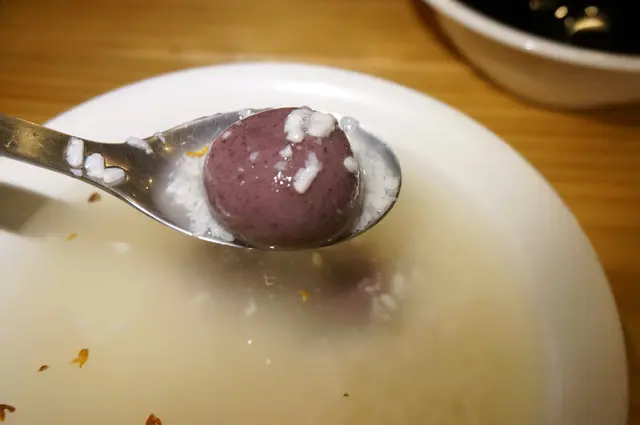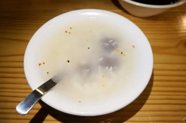 芝麻湯圓倒是蠻好吃的, 小米有將湯圓吃完啊(待會下一道來介紹), 至於桂花甜酒釀就...對不起了. 就沒有喝完 ><