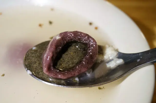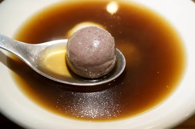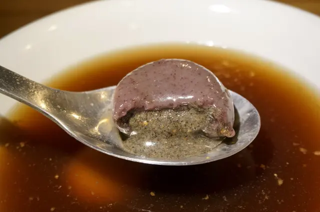 芝麻湯圓小米也來推薦一下, 基本上小米本來就很喜歡吃黑芝麻, 這顆芝麻湯圓咬下去也是爆醬流出不少芝麻餡料, 除了有芝麻香外, 還有芝麻沙沙口感唷