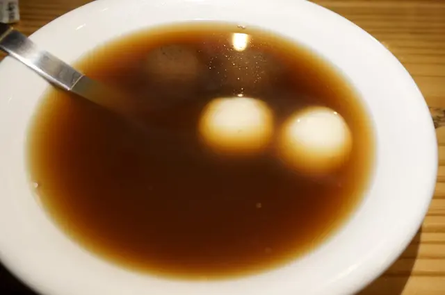 因為吃了湯圓感覺很好吃, 就特別加點芝麻花生湯圓湯 40元, 可以選黑糖/薑汁/無糖豆漿(冬季), 店員有說明薑汁本身蠻濃的, 不是重口味客人可以選擇一半薑汁一半黑糖, 所以小米就依可愛店員推薦試看看囉