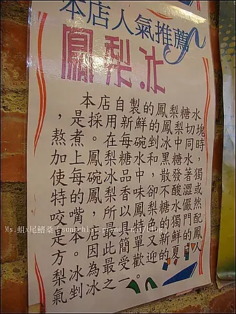 牆上貼著人氣推薦的鳳梨冰介紹。