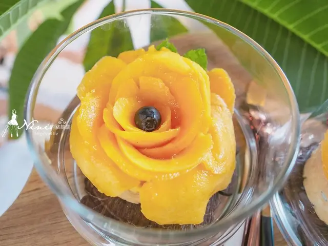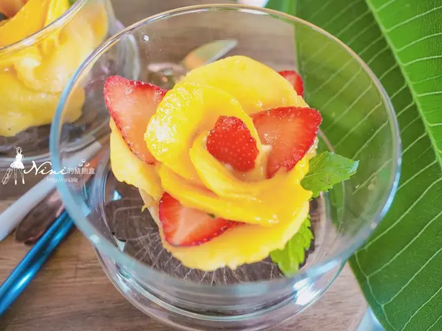 用芒果做成的超漂亮玫瑰花甜點,是不是有點捨不得吃呢?