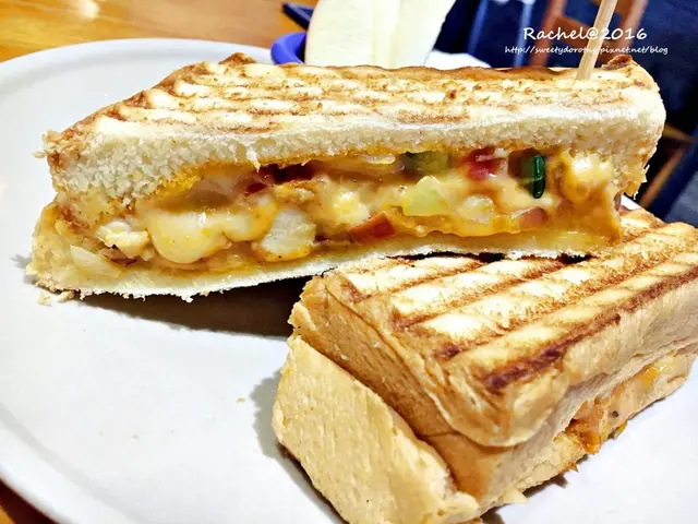這份餐點讓我們三人直呼太美味啦,內餡是墨西哥雞肉加上起司居然意外的搭,而且重點是波浪吐司烤得很酥脆卻不過硬,美味呀~~~