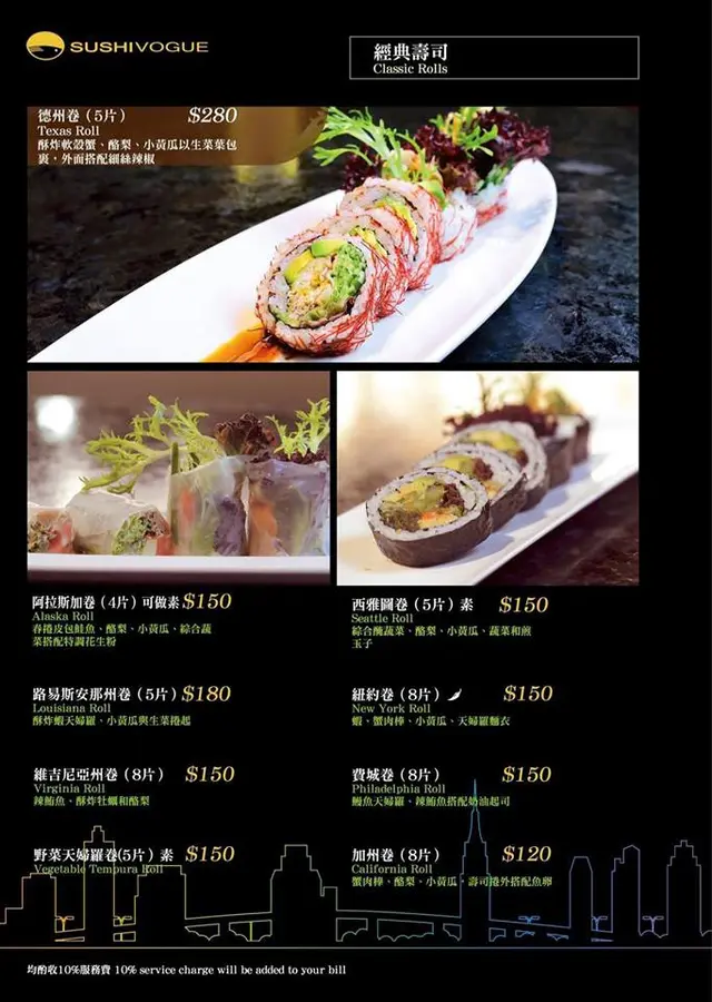 再來看一下菜單吧!雖然壽司是他們的主打,不過可是有相當多美日不同的料理可供選擇,光看菜單菜色非常多,小米建議可以點1~2道他們的壽司捲當主食,再搭配其他熟食及生魚片料理。此外壽司卷在同價位可以各點一半來湊成一份,可以嚐到不同的口味!