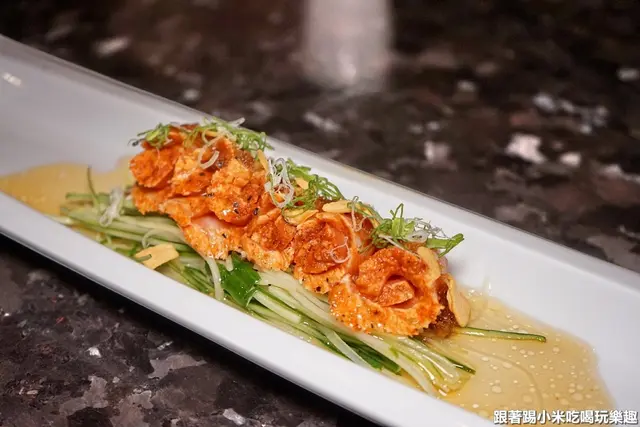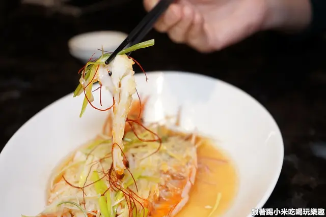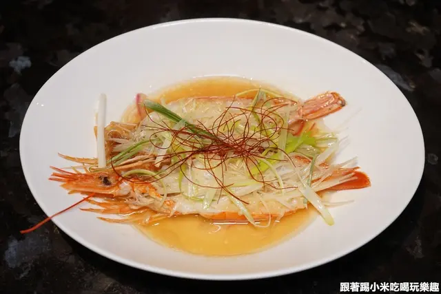 新風味天使紅蝦380元(2隻),以台式的清蒸方式去處理天使紅蝦倒是第一次看到XD 清蒸讓蝦肉有比較彈牙的口感,蝦肉吸進醬汁的甜美度也增加了,這時候好想來一碗白飯(謎之聲:把頭!你真是飯桶耶。)