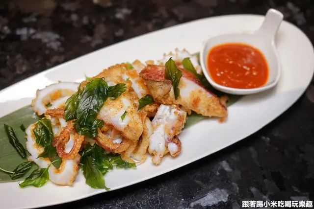 酥炸花枝300元,這一道建議要趁熱吃是最佳口感~先吃原味有鹹酥的外皮+彈牙又鮮味的花枝肉,之後可以再沾麻林納拉醬來提味挺不錯滴,這醬料有點像是義式帶點蕃茄酸香的口味,讓酥炸花枝顯得不會油膩