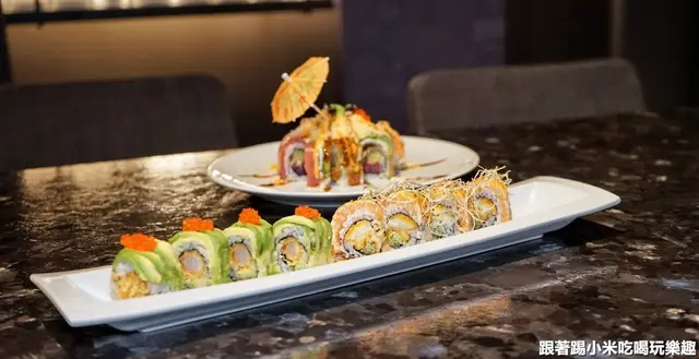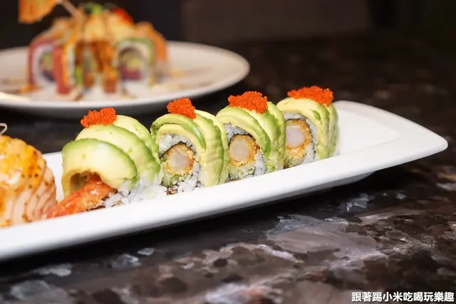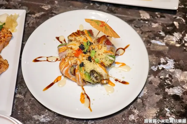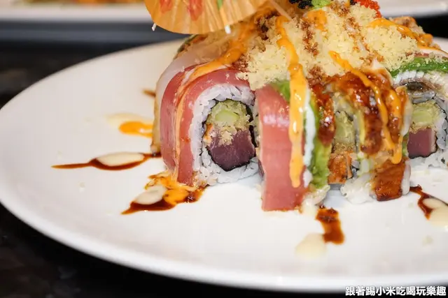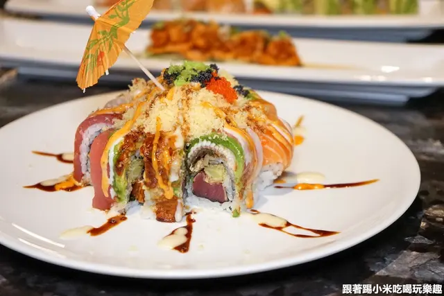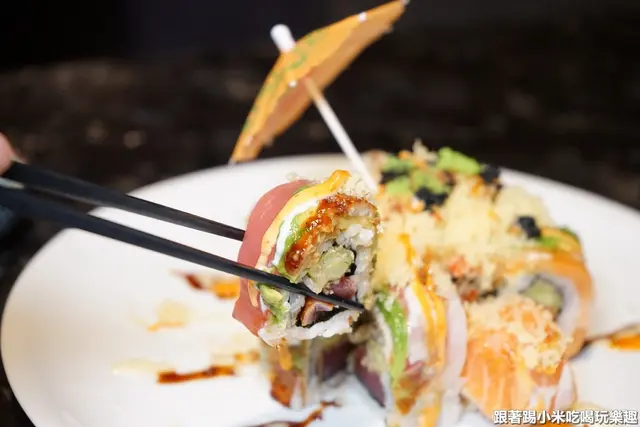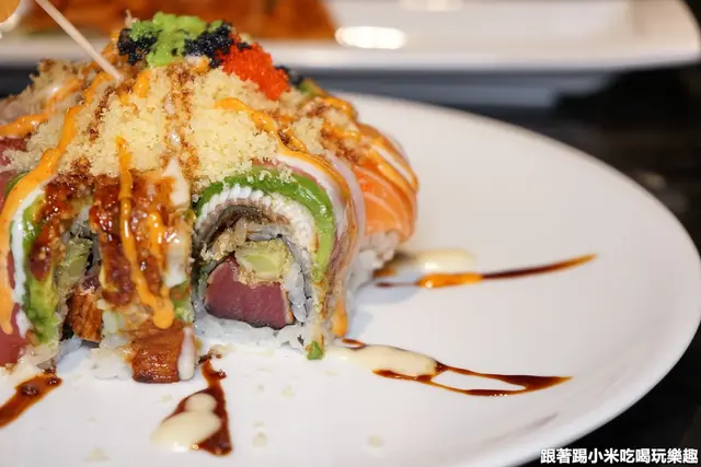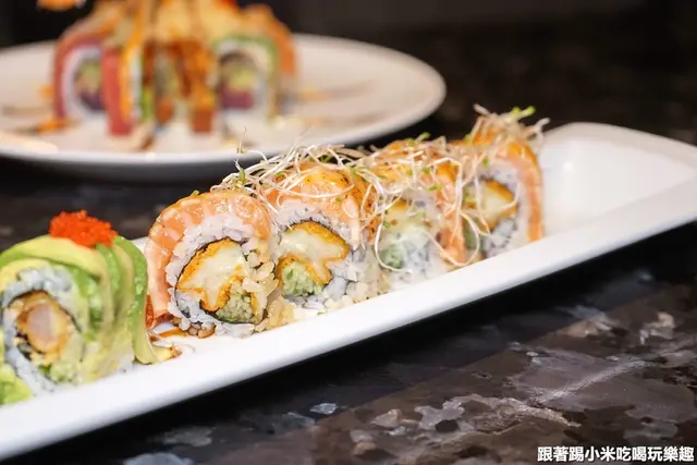 他們的特色是結合了美日兩國不同特色的料理結合,有許多創意.漂亮又美味的壽司給客人選擇,再加上許多的美式及日式經典料理,讓小米確實大開眼界,特別是個人是很愛吃米飯的料理,有壽司又有肉肉海鮮等,是值得來推薦的店家