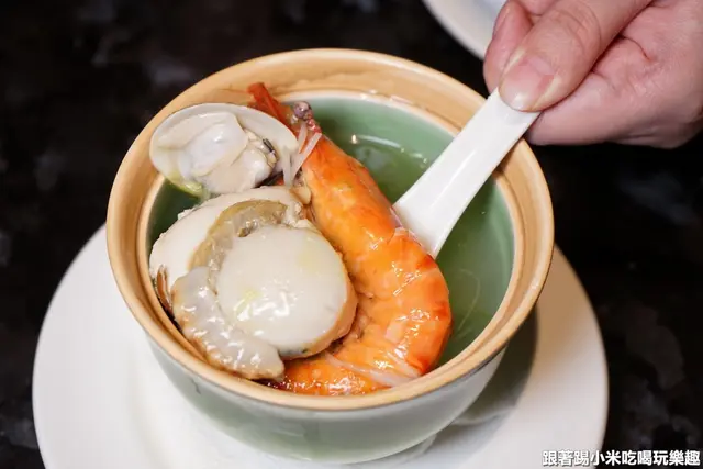 海鮮湯(260元),裡面有超豐富的海鮮!有大隻的帆立貝.大蝦子.大蛤蜊等,湯頭是有濃郁的魚肉鮮甜味,如果有喝酒的朋友來一碗可以好好的醒酒了
