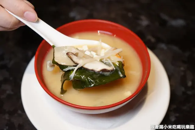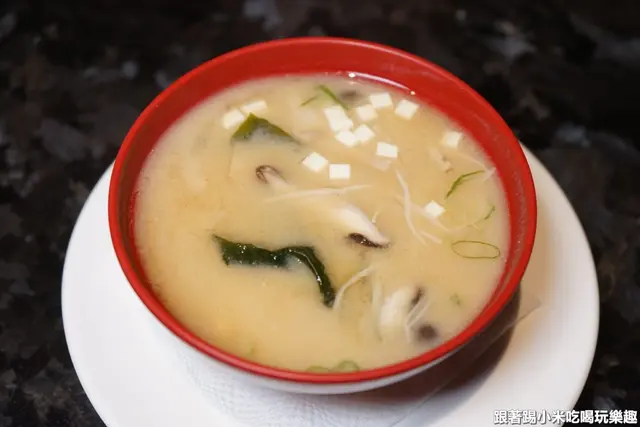 味噌磨菇湯(可做素)80元,是偏重口味一些味噌甜味湯頭,加上濃濃的菇菇香氣又是一道飯後飽足及解酒的好湯~