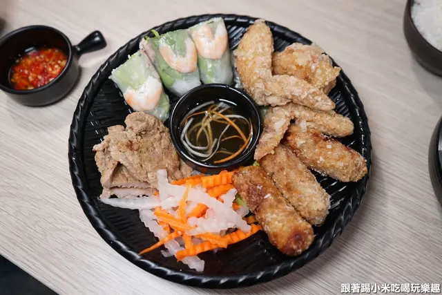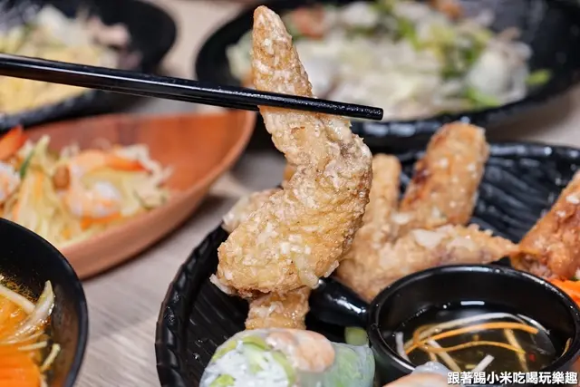 這是點超過70元後只需+180元就可以點的越南王超級拼盤(越式檸檬炸G翅.生菜春捲.越式炸春捲.越式排骨),基本上越南經典小吃都在裡面了,而且每種3份我們剛好都可以吃到