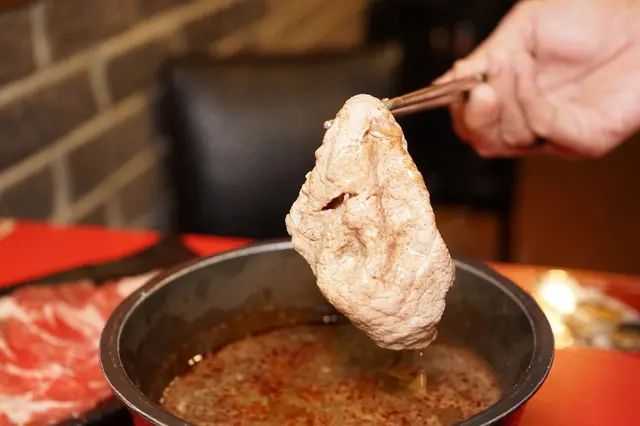牛肉有軟嫩到, 建議涮3~5秒就好, 有牛肉油花的甘甜及吸附湯汁後食用, 就不太需要醬料了~