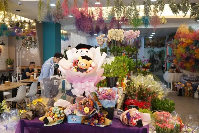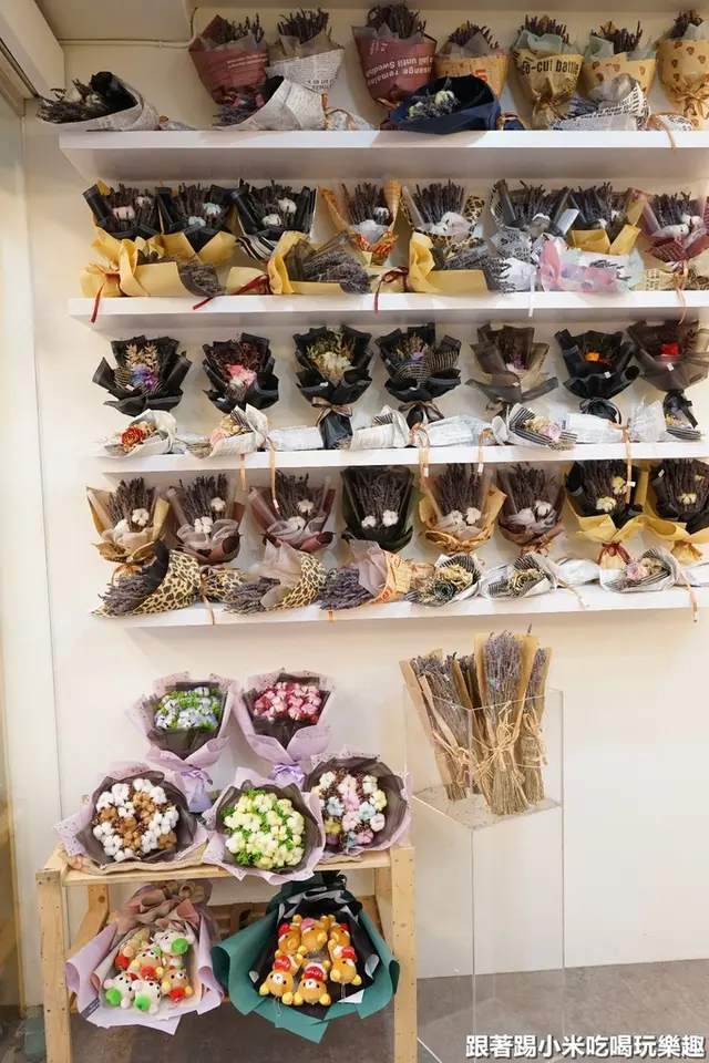 不只日常的單支花朵,還有一些乾燥花的花束,配上公仔的裝飾會讓人少女心大爆發的啦