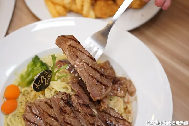 霜降牛排369元,單價上是有點稍高,不過原肉的牛排沒有複雜調味的表現是還可以,有嫩中帶嚼勁的肉甜的口感~當然小資族及學生們可以先品嚐前面介紹的輕食,喜歡再往上攻唷